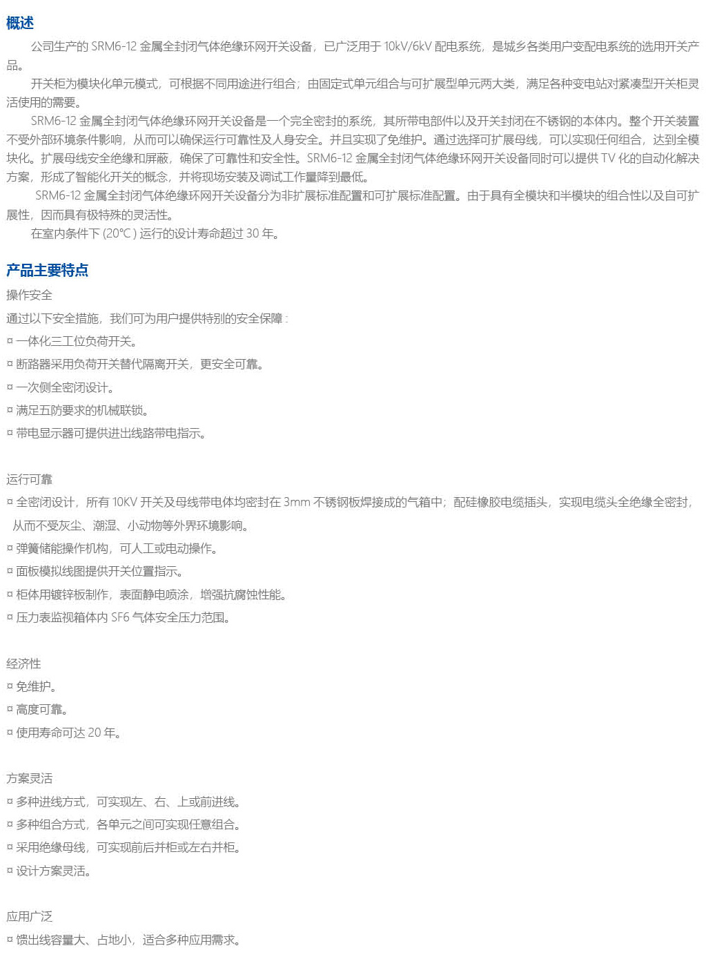 SRM6-12金属全封闭气体绝缘环网开关设备
