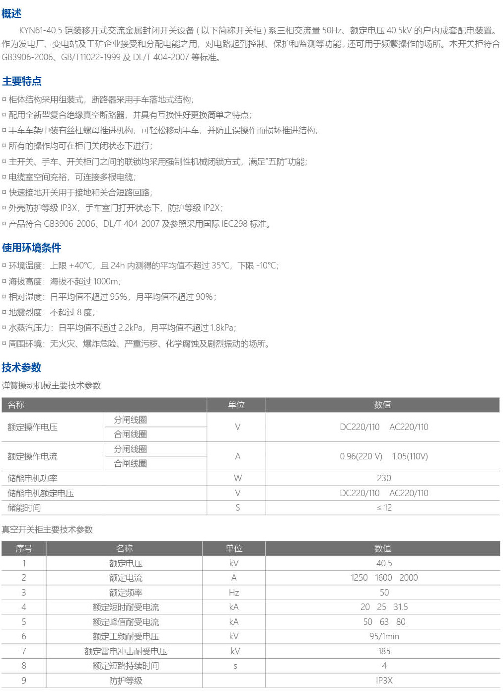 KYN61-40.5铠装移开式交流金属封闭开关设备